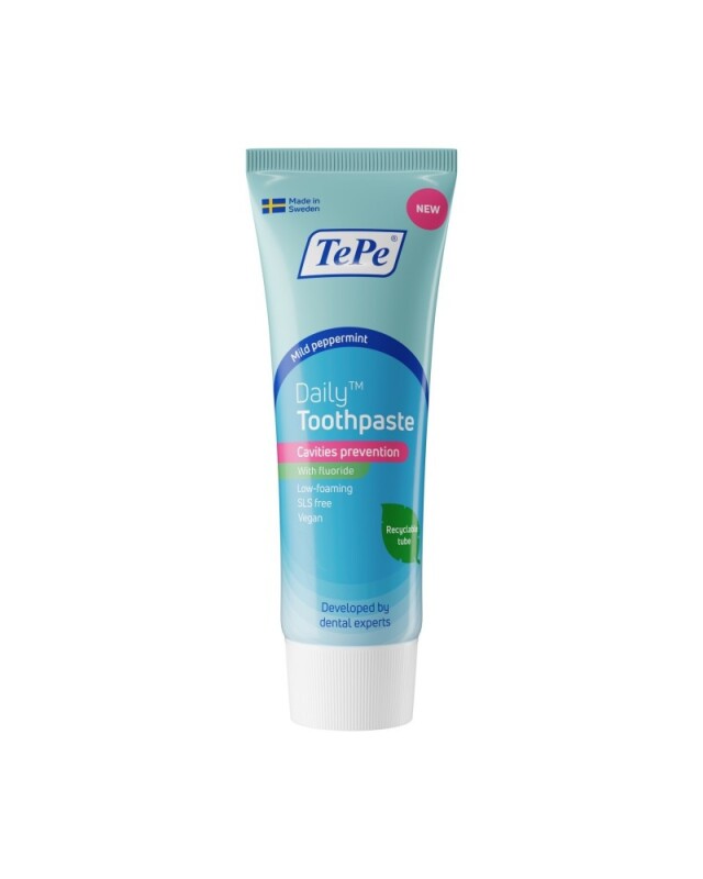 Froomo, маркетплейс професійної косметики та товарів для здоров'я\\Зубна паста TePe Daily з фтором 1450 ppm RDA 88 75 мл від 7 років смак м'ята