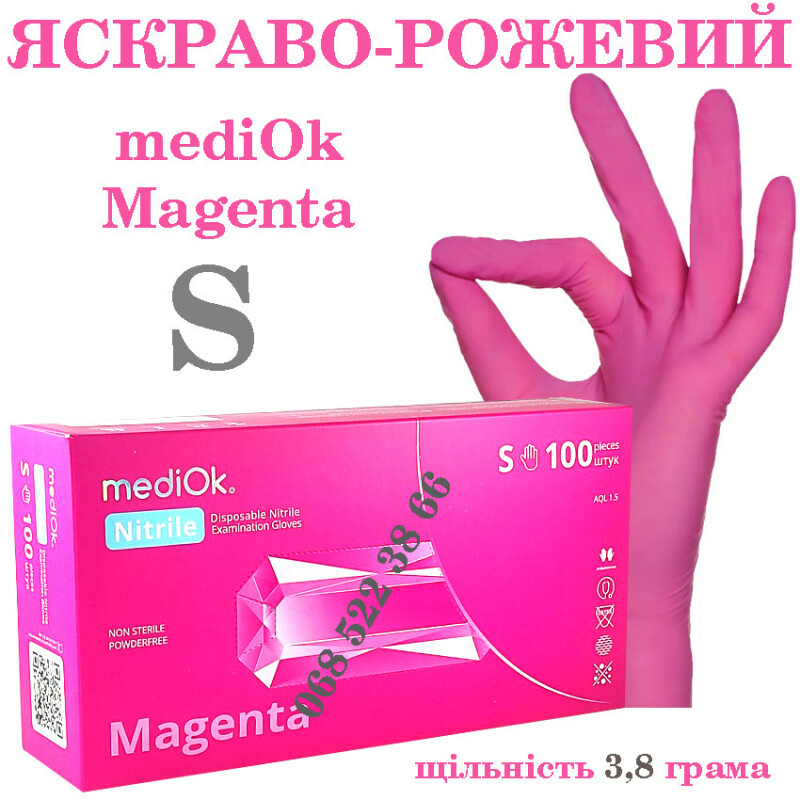 Рукавиці нітрилові рожевий Mediok Magenta розмір S, щільність 3.8г, уп.100 шт