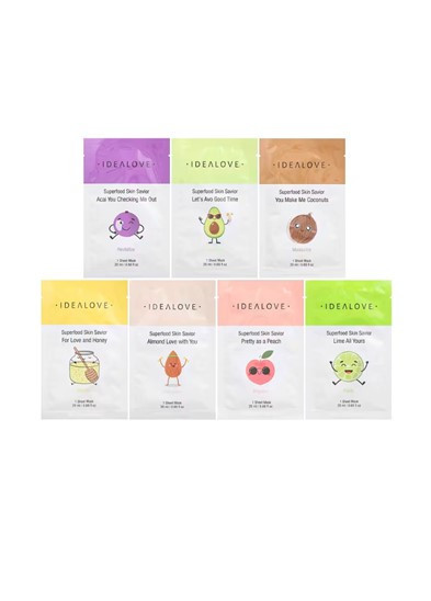 Froomo, маркетплейс професійної косметики та товарів для здоров'я\\Idealove, Superfood Skin Savior, тканинні косметичні маски із суперфудами, асорті,7 шт. по 20 мл