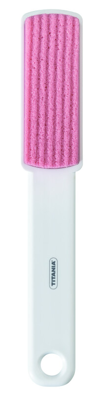 Froomo, маркетплейс професійної косметики та товарів для здоров'я\\Педікюрна комбінована щітка-пемза на довгій ручці блідо-рожева