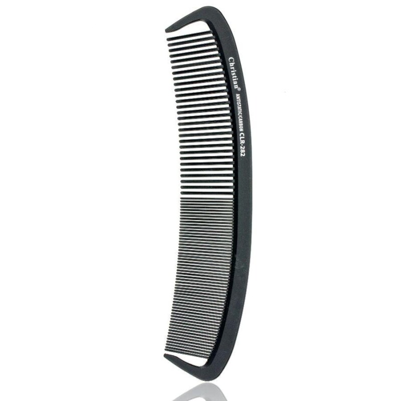 Froomo, маркетплейс професійної косметики та товарів для здоров'я\\Гребінець для волосся карбоновий антистатичний середньо-дрібнозубий Christian CLR-282