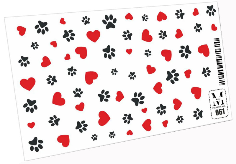 Froomo, маркетплейс професійної косметики та товарів для здоров'я\\Слайдер-дизайн для декору нігтів №061 Відбитки лап, сердечка