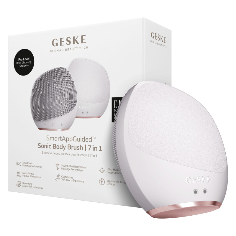 Froomo, маркетплейс професійної косметики та товарів для здоров'я\\Ультразвукова щітка для тіла та інтенсивний пілінг GESKE Sonic Body Brush&Intensive Exfoliator 7 в 1 starlight