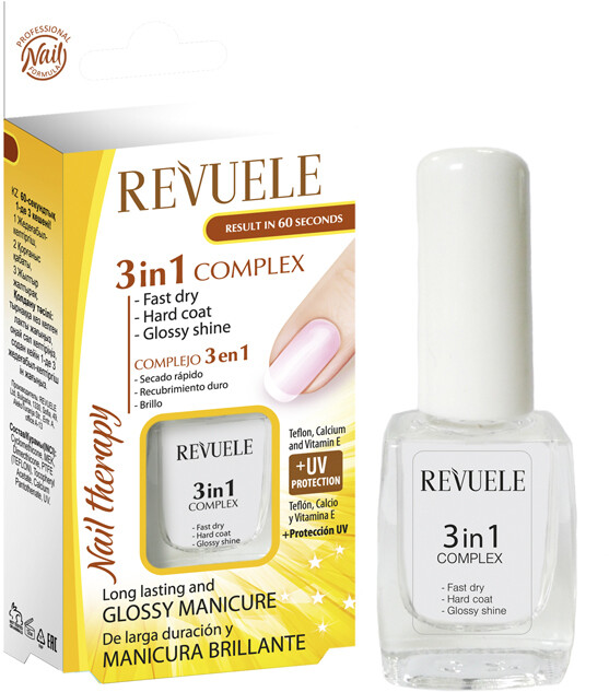 Комплекс 3 в 1 швидко висихає, тверде покриття та глянсовий блиск Nail Therapy Complex 3 In 1