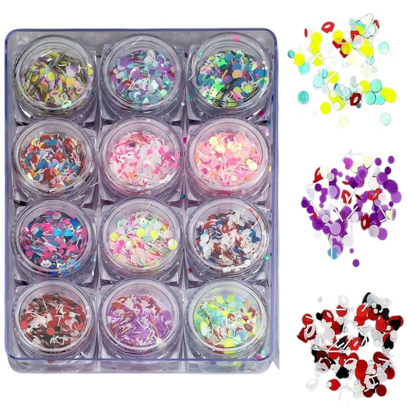 Froomo, маркетплейс професійної косметики та товарів для здоров'я\\Набір декору для манікюру GC-29 мерехтливий хаос 12 кольорів