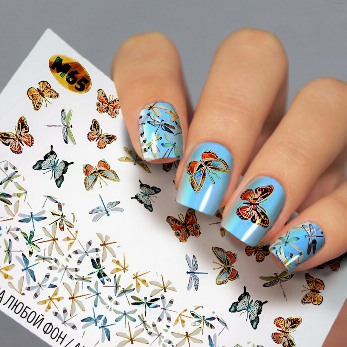 Froomo, маркетплейс професійної косметики та товарів для здоров'я\\Наклейки метелики на нігті - дизайн Слайдер для нігтів Fashion nails - комахи, метелики, бабки М65