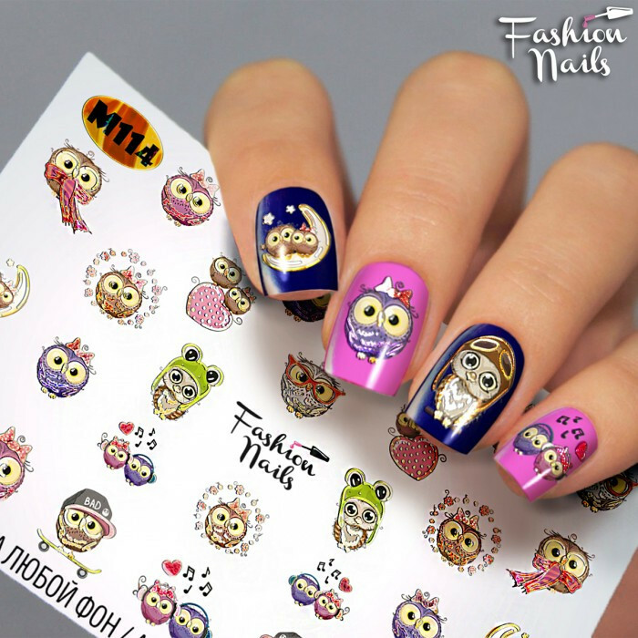 Froomo, маркетплейс професійної косметики та товарів для здоров'я\\Слайдер -дизайн Сова - Наклейки Сови для Нігтів арт.М114