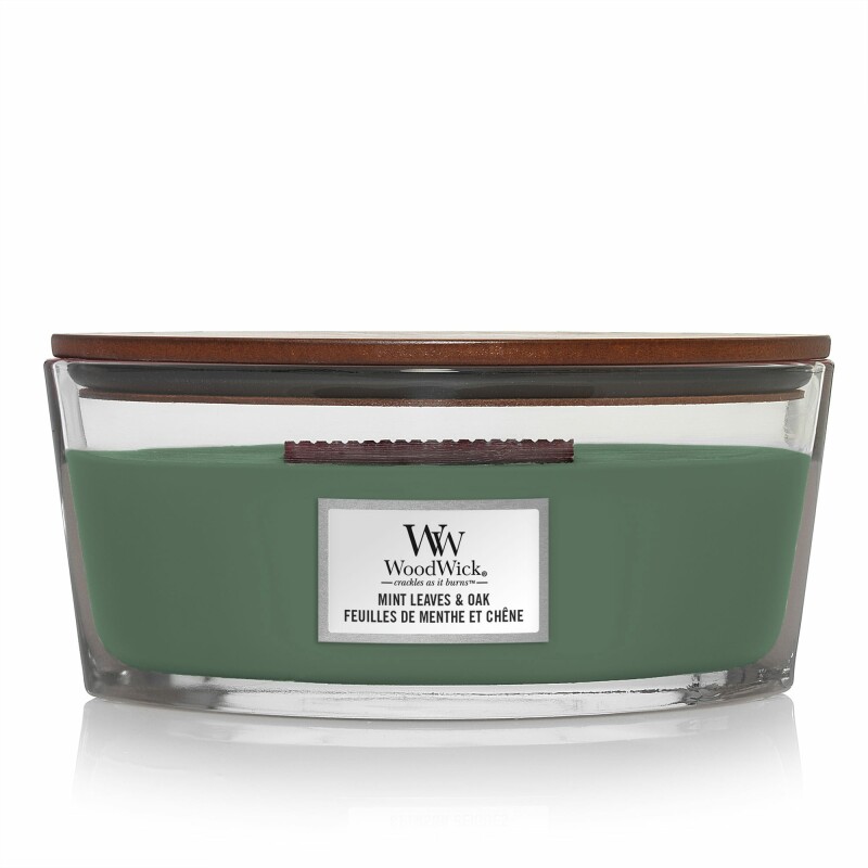 Froomo, маркетплейс професійної косметики та товарів для здоров'я\\Ароматична свічка в склі Woodwick Ellipse Mint leaves & Oak 453 г (1721696E)