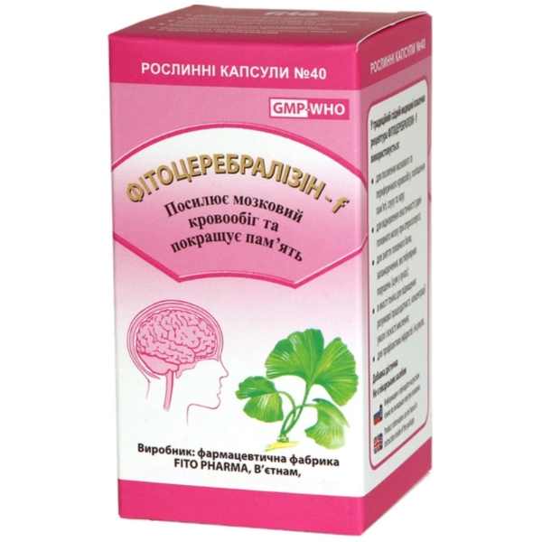 Комплекс для профілактики роботи головного мозку Fito Pharma Фітоцеребралізин-F 0,5 г 40 капсул