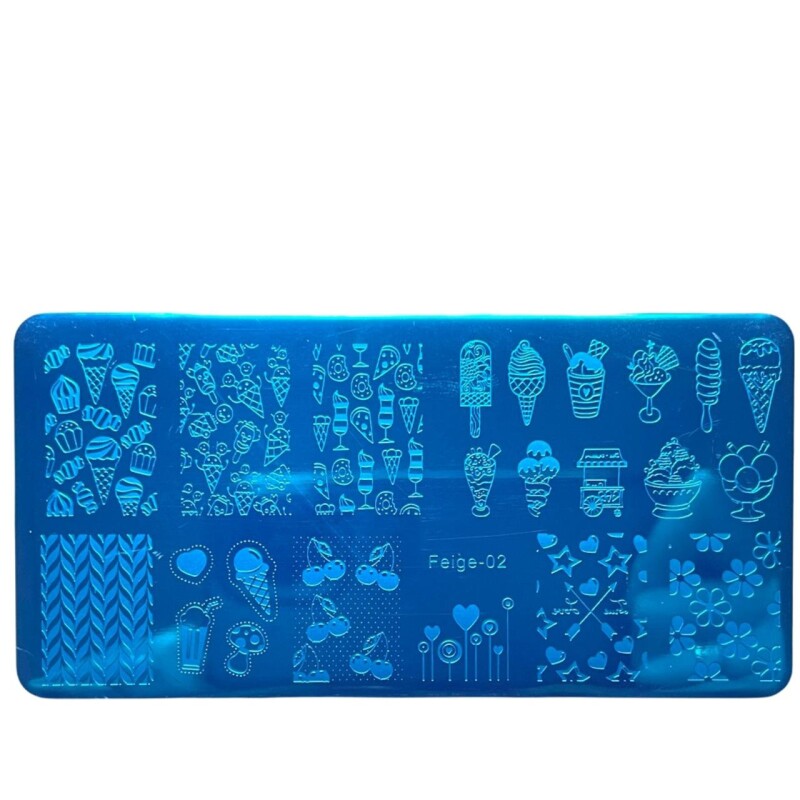Пластини стемпинг морозиво, тістечка, вишні, квіти (12*6 см) Feige-02