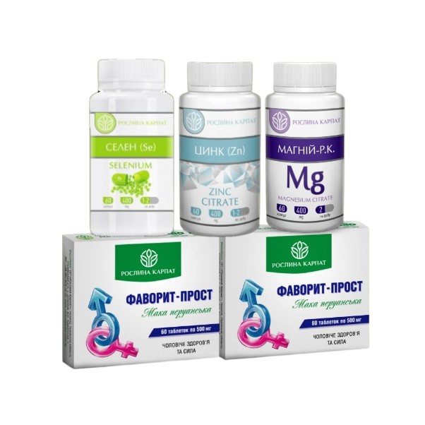 Чоловіча сила. Комплексна програма Рослина Карпат Фаворит-прост, Магній, Цинк, Селен 4 препарати