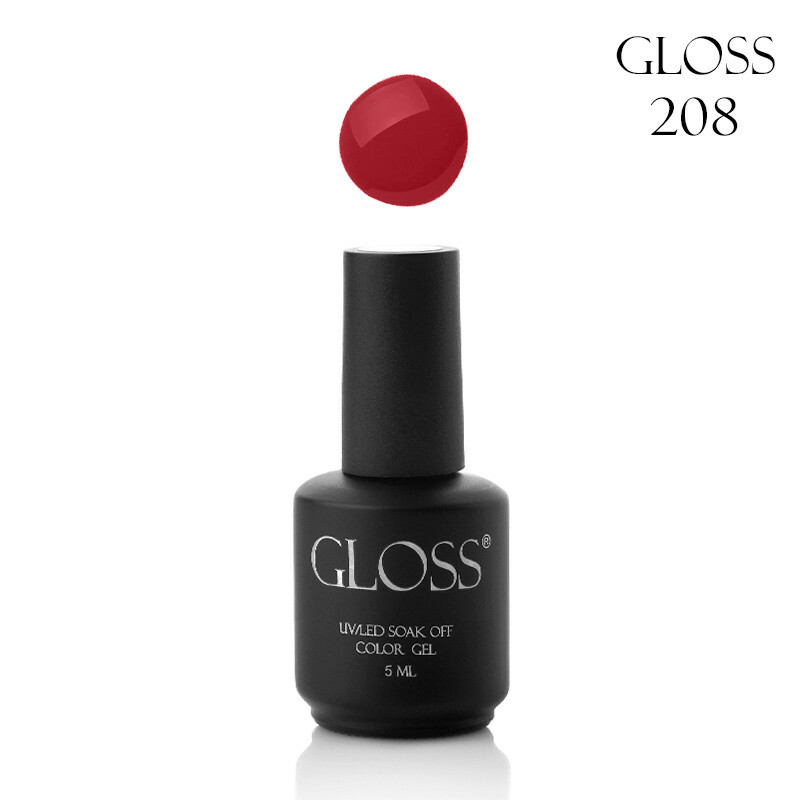 Гель-лак для нігтів приглушений червоний GLOSS Gel Polish №208, 5 ml
