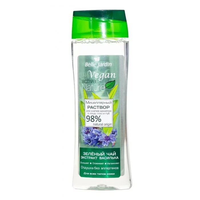 Міцелярний розчин для зняття макіяжу з обличчя, очей і губ з зеленим чаєм і волошкою, Active Nature Eco Belle Jardin