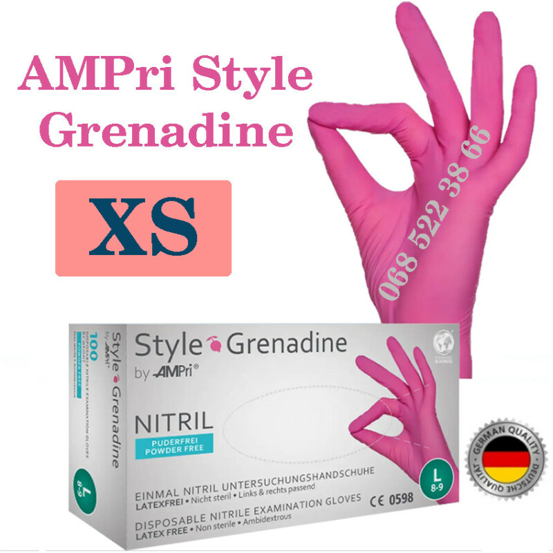 Рукавиці нітрилові рожевий AMPri Style Grenadine розмір XS, щільність 4г, уп.100 шт