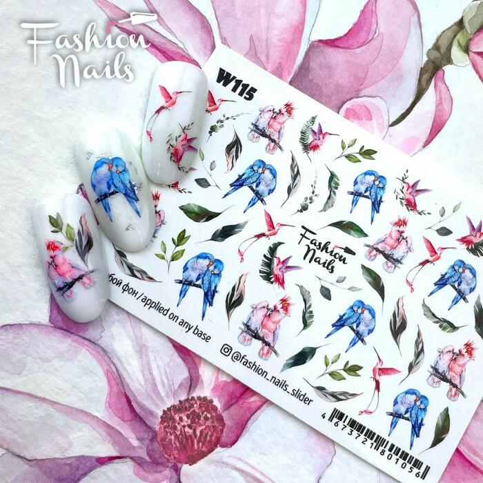 Froomo, маркетплейс професійної косметики та товарів для здоров'я\\Слайдер дизайн наклейки на нігті Птаха Колібрі Папуги для манікюру водні слайдери Fashion Nails W115