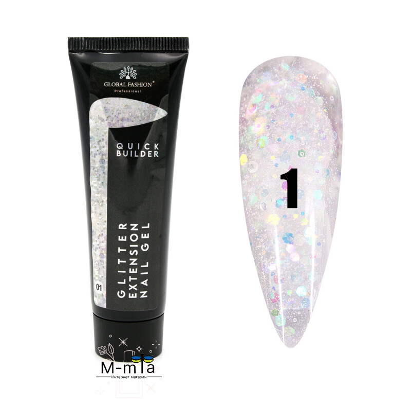 Froomo, маркетплейс професійної косметики та товарів для здоров'я\\Акрил гель Global Fashion 30 мл, Glitter № 1