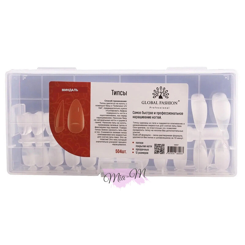 Froomo, маркетплейс професійної косметики та товарів для здоров'я\\Гелевые типсы для наращивания ногтей Global Fashion (Миндаль) 504 шт