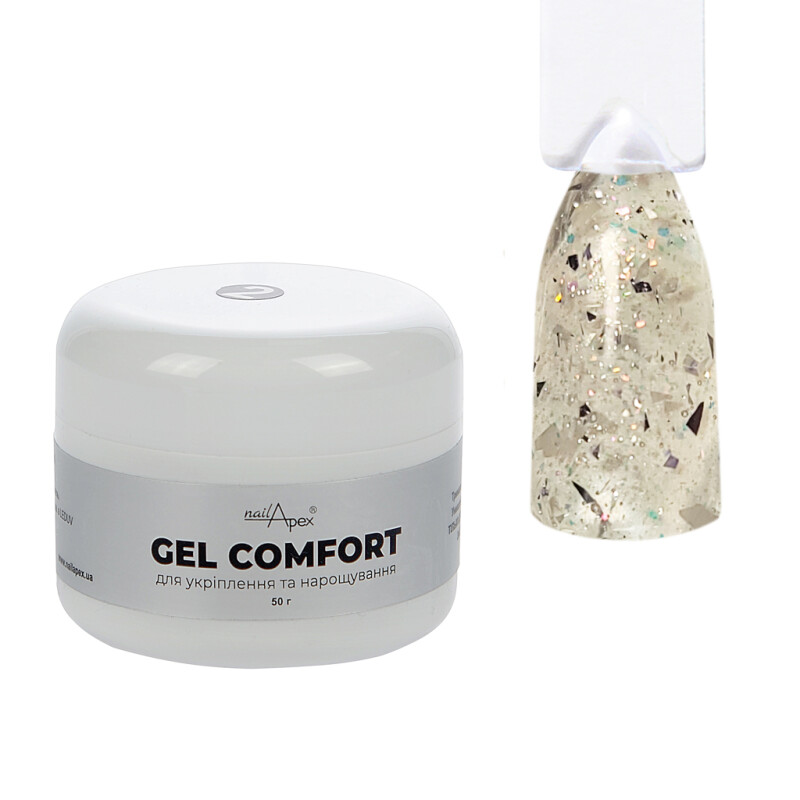 Гель для нігтів без опилу прозорий з включеннями шимера, поталі та юки Comfort Gel №15