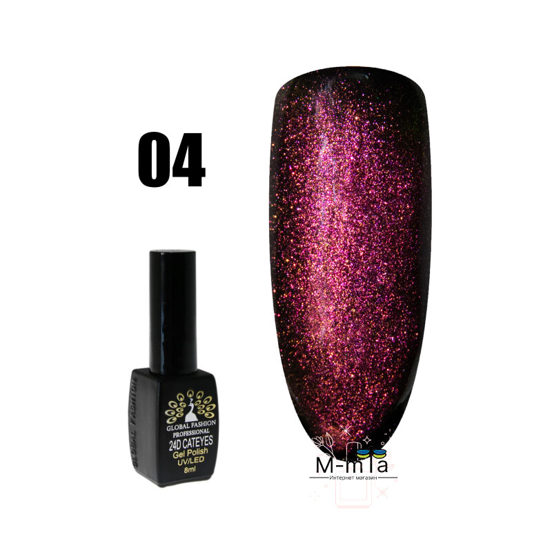 Froomo, маркетплейс професійної косметики та товарів для здоров'я\\Гель лак кошачий глаз 24D Global Fashion magic cat № 4