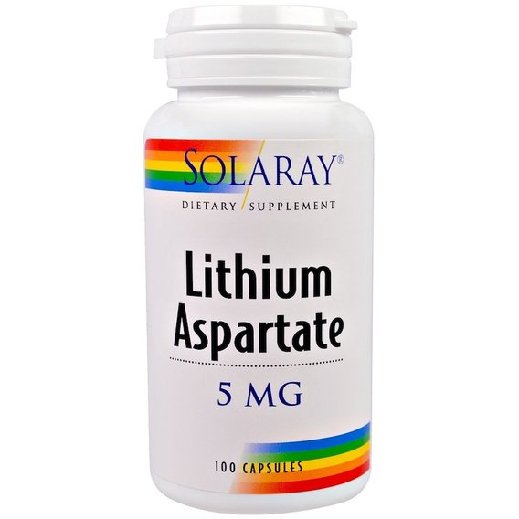 Froomo, маркетплейс професійної косметики та товарів для здоров'я\\Мікроелемент Літій Solaray Lithium Aspartate 5 mg 100 Caps SOR-04599