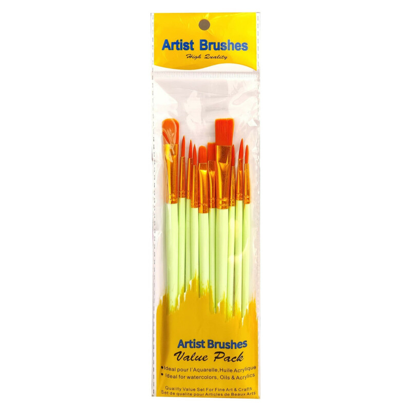 Froomo, маркетплейс професійної косметики та товарів для здоров'я\\Набір із 10 шт. пензлів для бодіарту Artist Brushes салатові