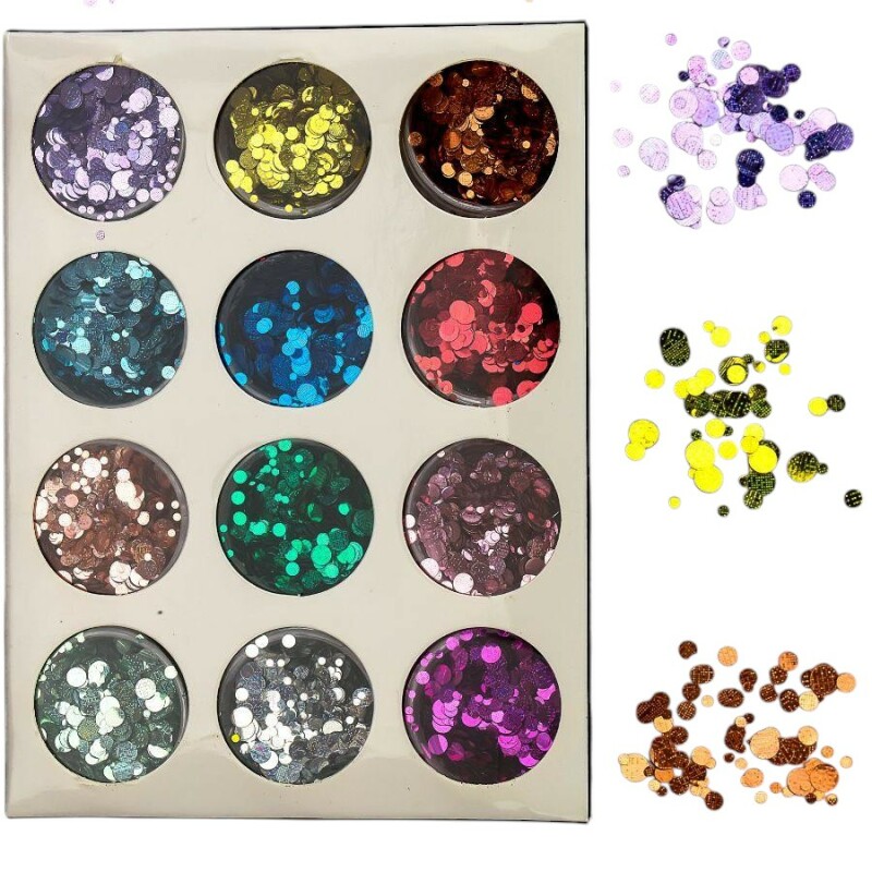 Набір декору для манікюру GC-53 Мерехтливі та кружечки різних розмірів 12 кольорів