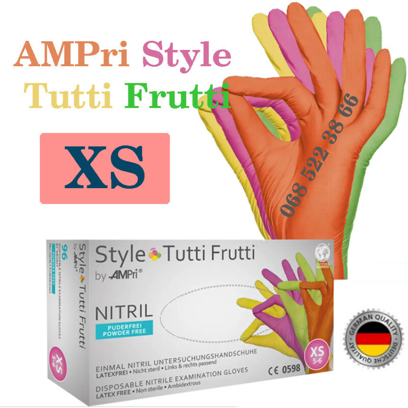 Рукавиці нітрилові 4-кольори AMPri Style Tuti-Fruti розмір SX, щільність 4г, уп.100 шт