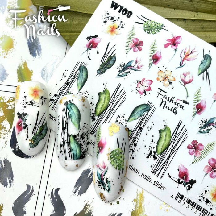Слайдер-дизайн КВІТИ для дизайну нігтів Слайдери водні наклейки КВІТИ Fashion Nails W108