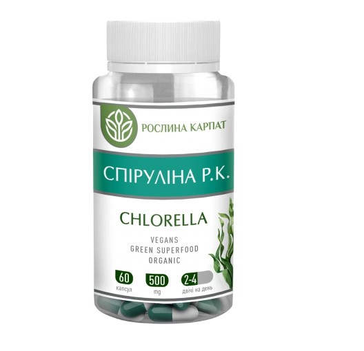 Froomo, маркетплейс професійної косметики та товарів для здоров'я\\Спіруліна Р.К. Chlorella 60 кап.(комплекс незамінних вітаминів та мінералів,зміцнення імунитету)