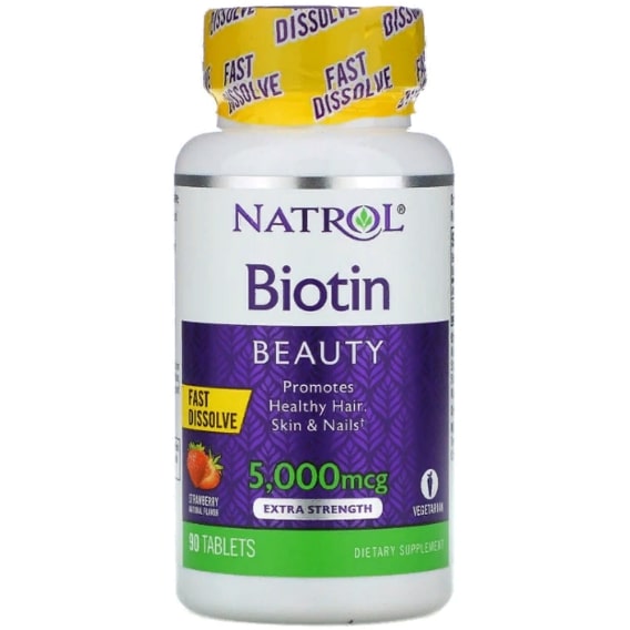 Froomo, маркетплейс професійної косметики та товарів для здоров'я\\Біотин Natrol Biotin 5000 mcg 90 Tabs Strawberry NTL-06323