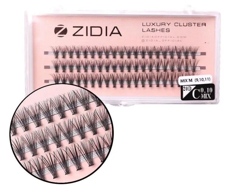 Froomo, маркетплейс професійної косметики та товарів для здоров'я\\Вії пучкові ZIDIA Cluster Lashes 20D C 0,10 MIX M 9 10 11 мм, 3 стрічки