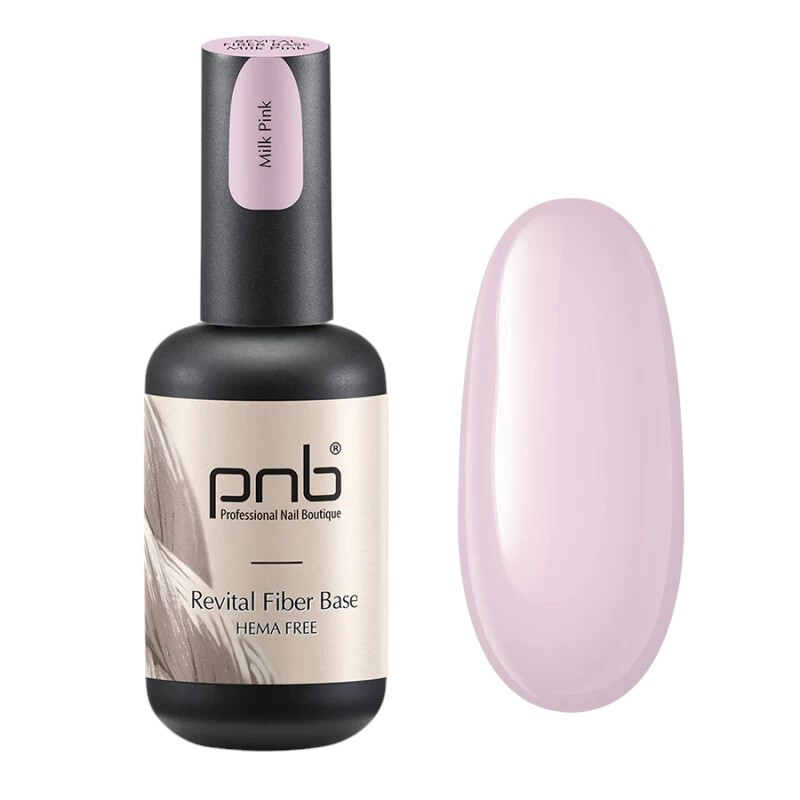 Froomo, маркетплейс професійної косметики та товарів для здоров'я\\Відновлююча база для нігтів з нейлоновими волокнами PNB Revital Fiber Base HEMA-Free Milk Pink, 17 ml