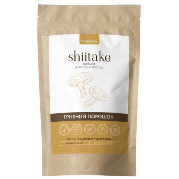 Грибний комплекс Fungipapa Шиїтаке (Lentinula edodes) - грибний порошок 60 г /30 порцій/