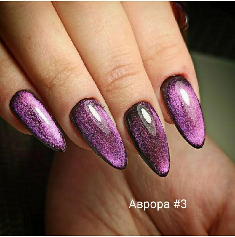 Зелений бірюзовий смарагдовий гель-лак Котяче око Аврора cat eye AVRORA City Nail №4 Малиновий