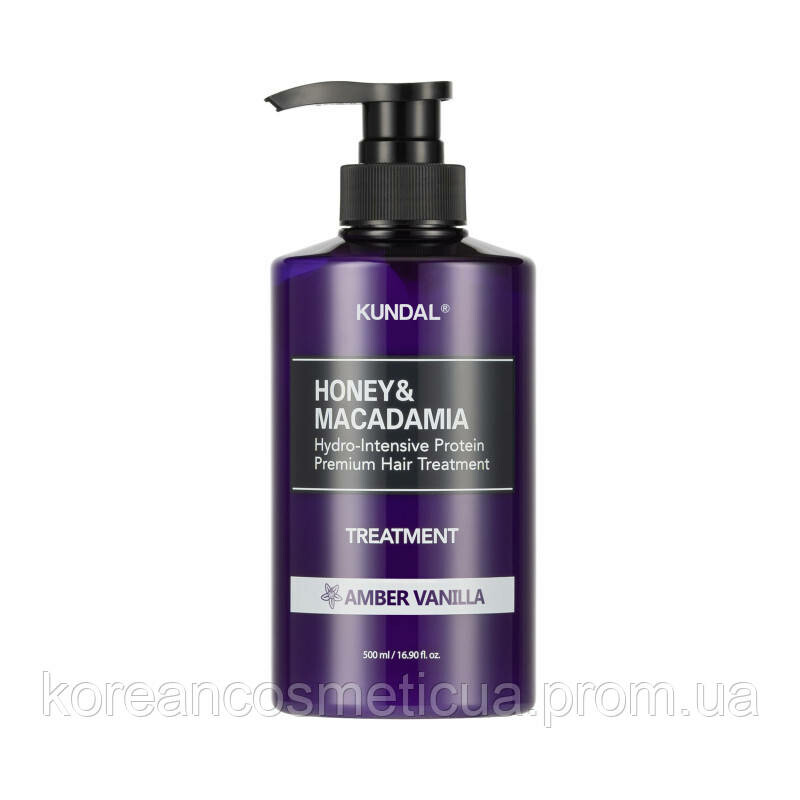 Froomo, маркетплейс професійної косметики та товарів для здоров'я\\Кондиціонер-маска для волосся "Амбра & Ваніль" Kundal Honey & Macadamia Protein Hair Treatment Amber Vanilla 500ml