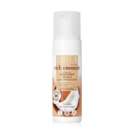 Froomo, маркетплейс професійної косметики та товарів для здоров'я\\Ніжна кокосова пінка для вмивання 3в1 серія Rich Coconut Eveline 150 мл