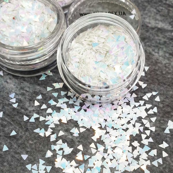 Froomo, маркетплейс професійної косметики та товарів для здоров'я\\Білі голограмні трикутнички для нігтів