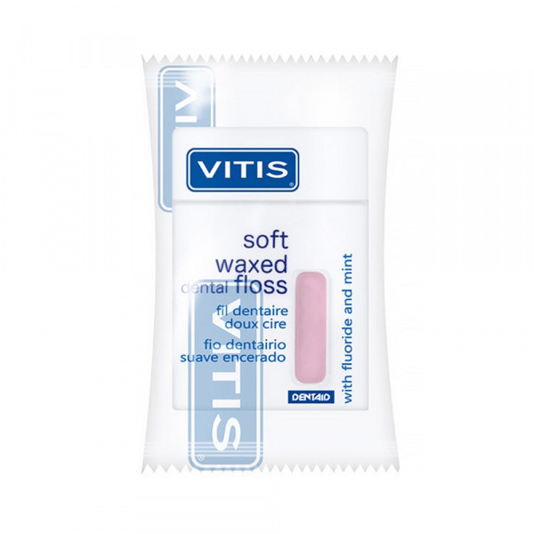 Froomo, маркетплейс професійної косметики та товарів для здоров'я\\Зубна нитка DENTAID VITIS м'яка розрихлююча для міжзубних проміжків 50 метрів блістер