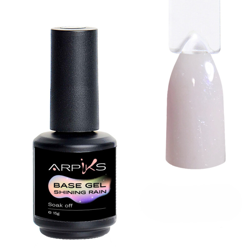 Камуфляжна база для нігтів молочно-бузкова з блискітками Base Gel Shining Rain №3