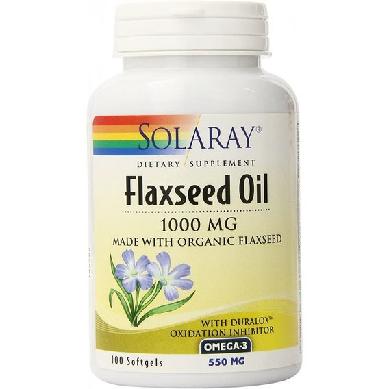 Froomo, маркетплейс професійної косметики та товарів для здоров'я\\Лляна олія Solaray Flaxseed Oil 1000 mg 100 Softgels SOR-00802