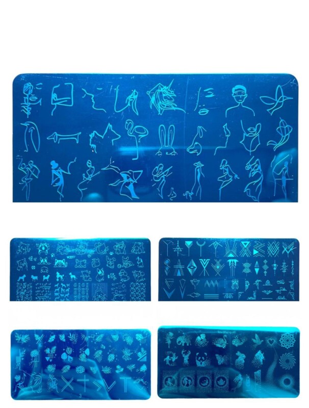 Froomo, маркетплейс професійної косметики та товарів для здоров'я\\Набір Пластин для Стемпінгу 5 штук Геометрія, Тварини, Рослини 12*6 см