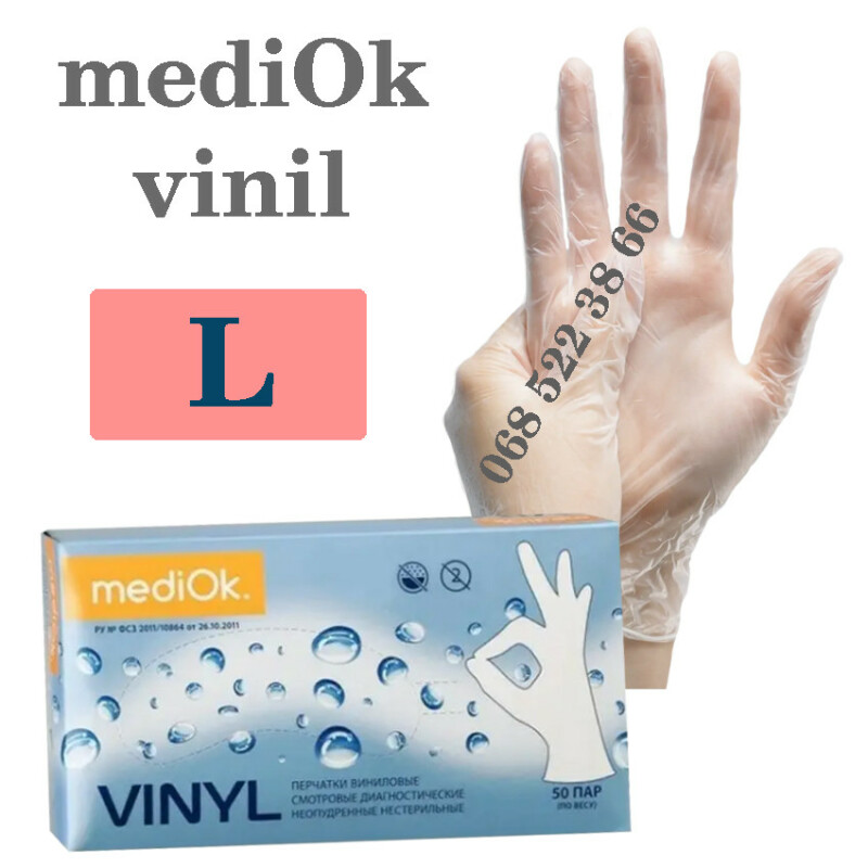 Рукавиці вінілові прозорі Mediok розмір L, щільність 5г, уп100 шт
