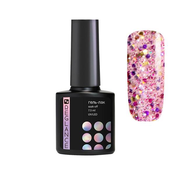 Froomo, маркетплейс професійної косметики та товарів для здоров'я\\Гель-лак Reglance 142 Рожевий з різнокольоровими блискітками 7.5 мл