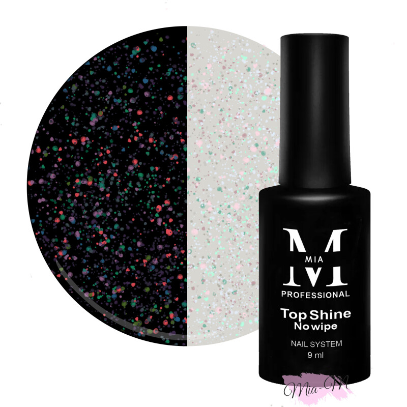Froomo, маркетплейс професійної косметики та товарів для здоров'я\\Декоративный топ для гель-лака Mia-M Professional Top Shine №1 с разноцветными хлопьями Юкки, 9 мл