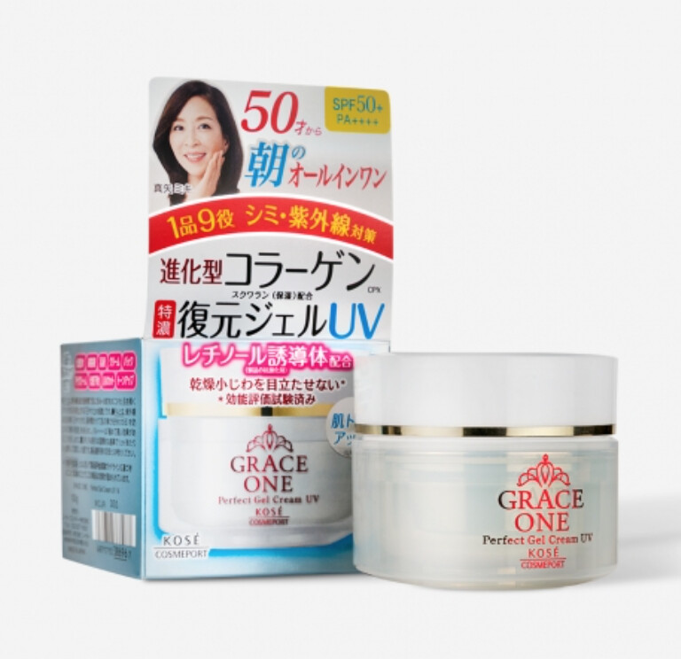 Froomo, маркетплейс професійної косметики та товарів для здоров'я\\Живильний крем для обличчя після 50 років KOSE Cosmeport Grace One Perfect UV Gel Cream SPF 50 + PA ++++, 100g