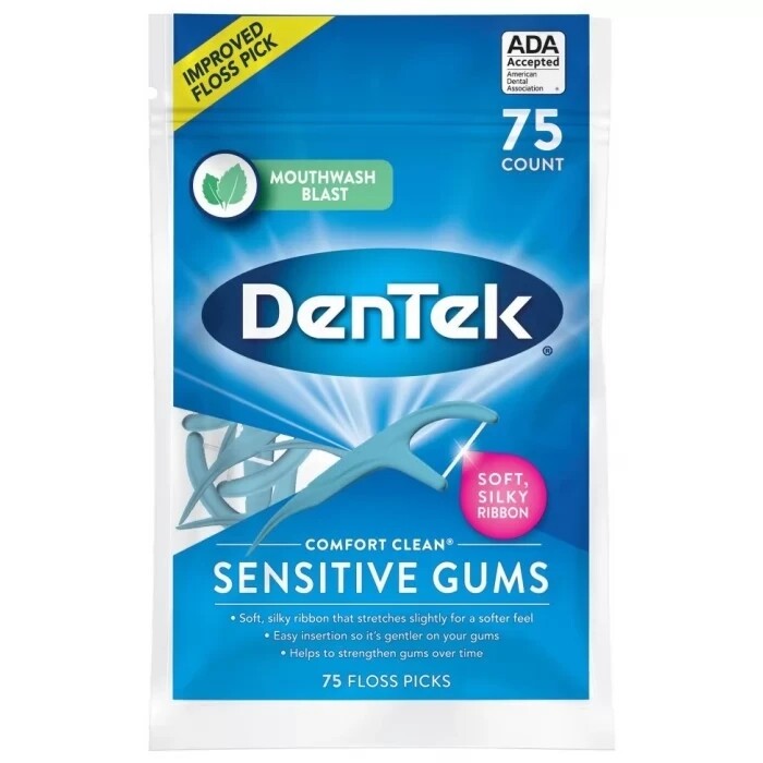 Froomo, маркетплейс професійної косметики та товарів для здоров'я\\Зубочистки-флоси DenTek Комфортне очищення для чутливих ясен 75 шт міжзубна нитка