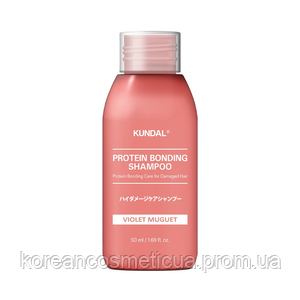 Froomo, маркетплейс професійної косметики та товарів для здоров'я\\Мініатюра Шампунь для пошкодженого волосся "Фіолетова конвалія" Kundal Protein Bonding Shampoo Violet Muguet 50ml