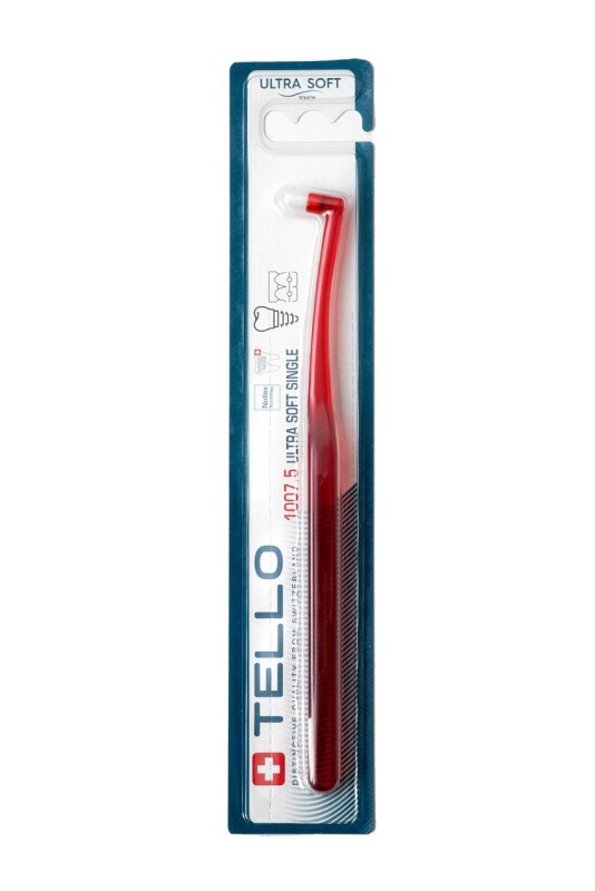 Монопучкова зубна щітка Tello Ultra Soft (Телло Ультра Софт), м'яка щітка для дітей 0,10 мм, червона
