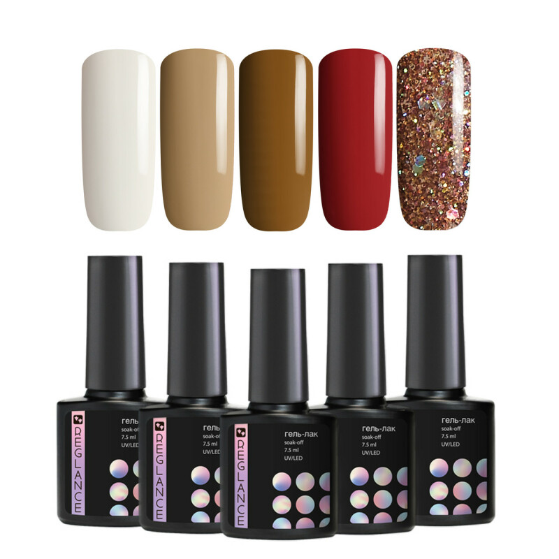 Набір 5 шт гель-лаки для нігтів Reglance Hot chocolate 7.5 мл
