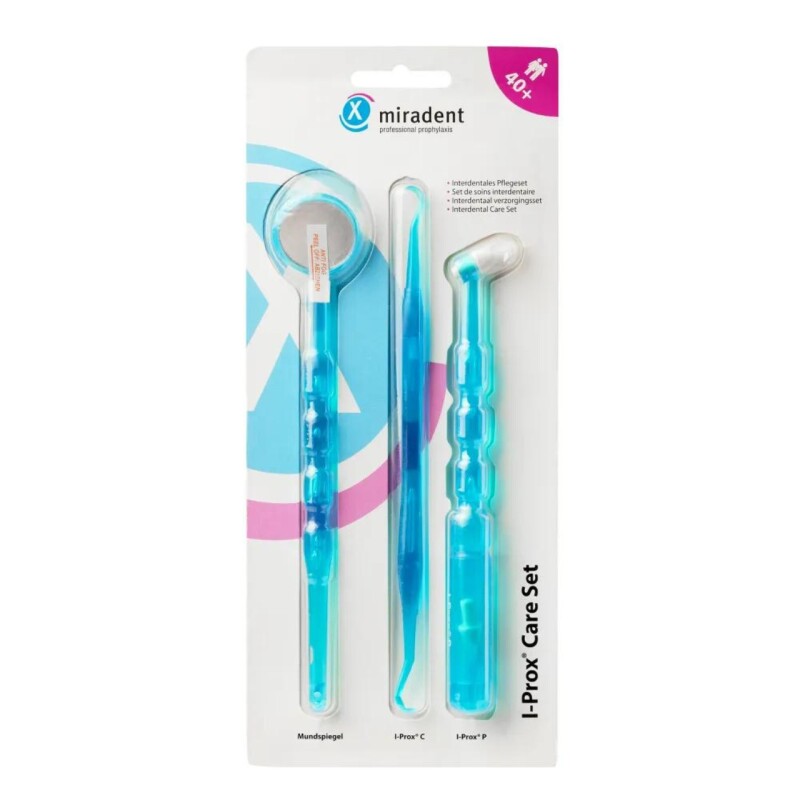 Froomo, маркетплейс професійної косметики та товарів для здоров'я\\Набір інструментів для гігієни порожнини рота I-Prox Care Set Miradent, Монопучкова щітка, Скейлер, Дзеркало, Мірадент